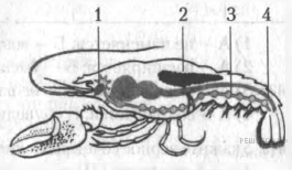 На схеме строения речного рака орган выделительной системы обозначен цифрой:
